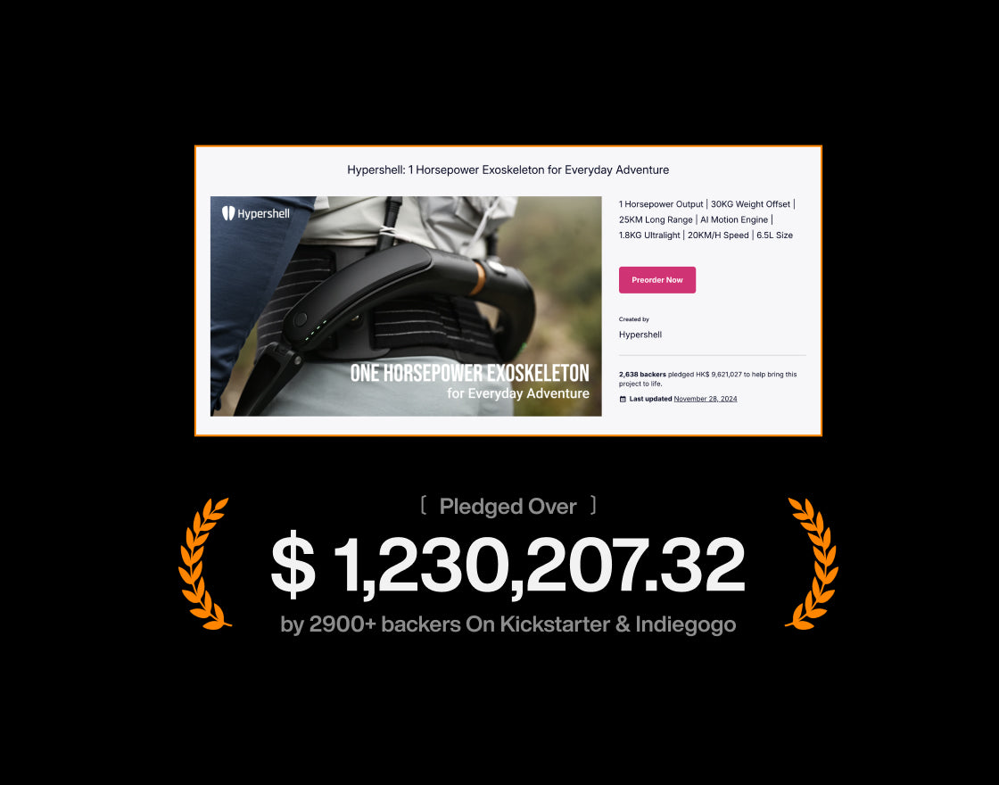 我們在 Kickstarter 上成功推出全球首款消費級外骨骼,創下歷史,僅一個月內便獲得 2,638 名支持者,眾籌金額高達 1,230,207.32 美元。
